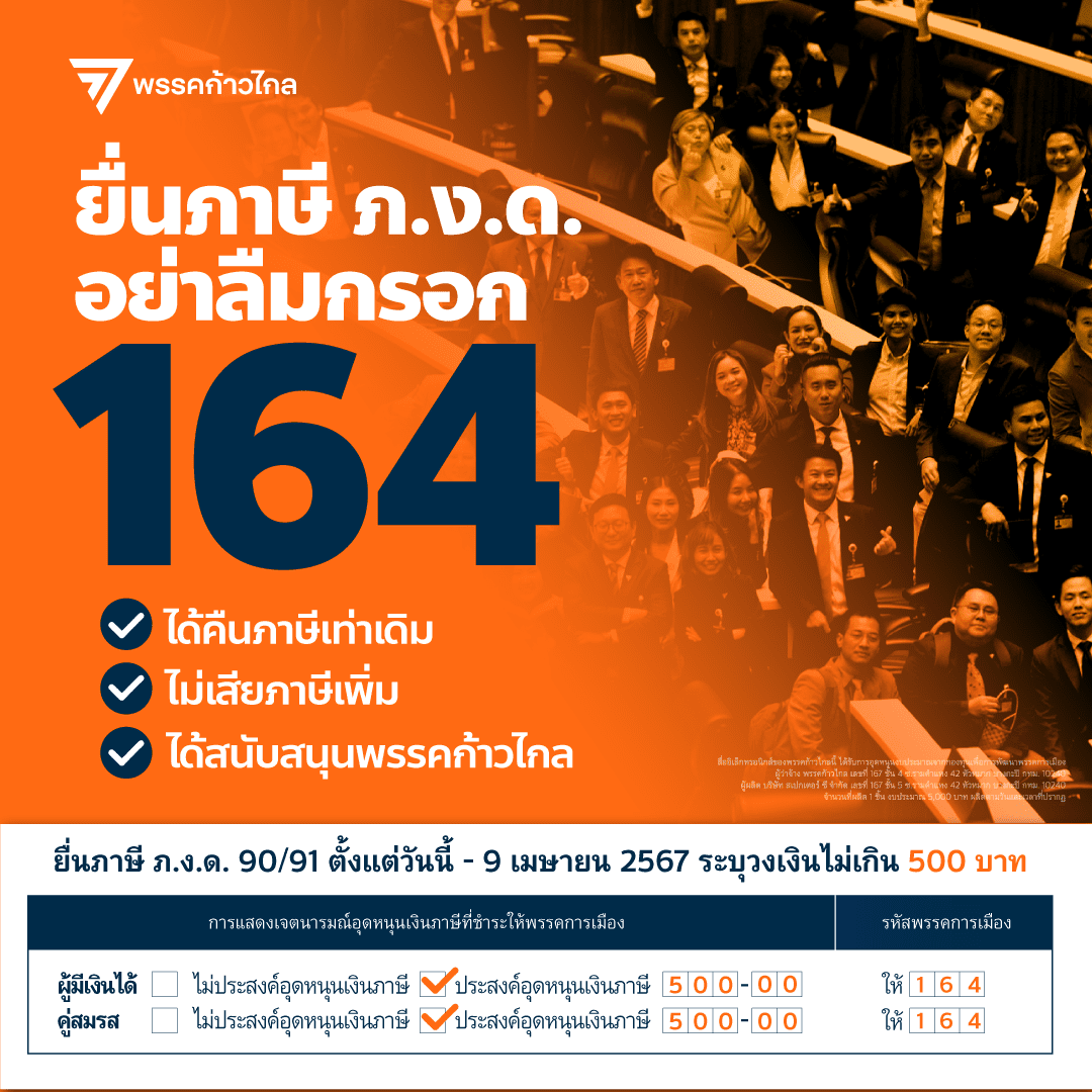 ยื่นภาษี ภ.ง.ด. 2566 อย่าลืมกรอก 164 สนับสนุนพรรคก้าวไกล!